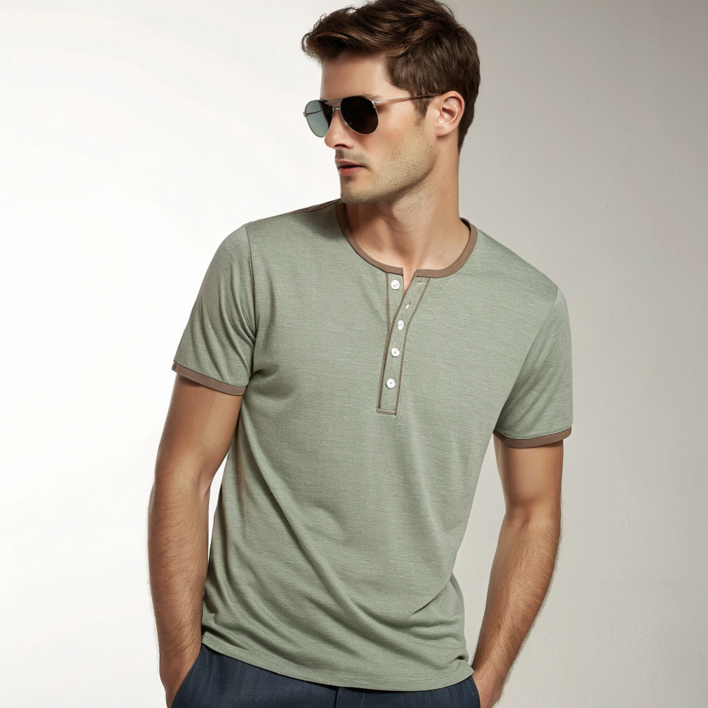 This henley neck t-shirt is made using soft yet resilient cotton fabric, designed to withstand regular wear without losing its form. The buttoned neckline adds a refined touch, making it suitable for both casual and semi-casual looks. The fabric is breathable, fade-resistant, and easy to maintain, ensuring long-term usability.